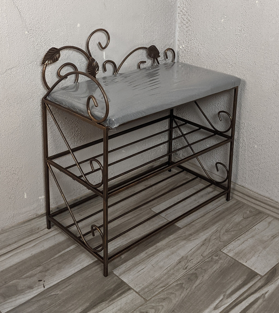 Банкетка для взуття доставляється у готовому вигляді, її не потрібно збирати. Цілісність та нерозбірливість конструкції забезпечує високу міцність банкетки.